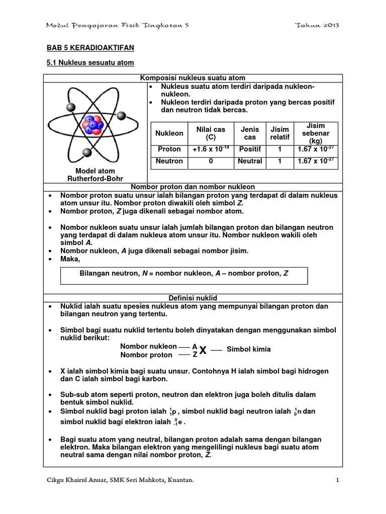 1 BAB 5 KERADIOAKTIFAN 51 Nukleus sesuatu atom Komposisi nukleus suatu atom Model atom Rutherford-Bohr Nukleus suatu atom terdiri daripada nukleon- nukleon. Isi padu 500 m3 dm3 m3 m m. 25032021 Gelombang tingkatan 5 fizik cikgu desikan disunting oleh smk changkat beruas perak cikgu khairul anuar dengan kolaborasi bersama smk seri mahkota kuantan.