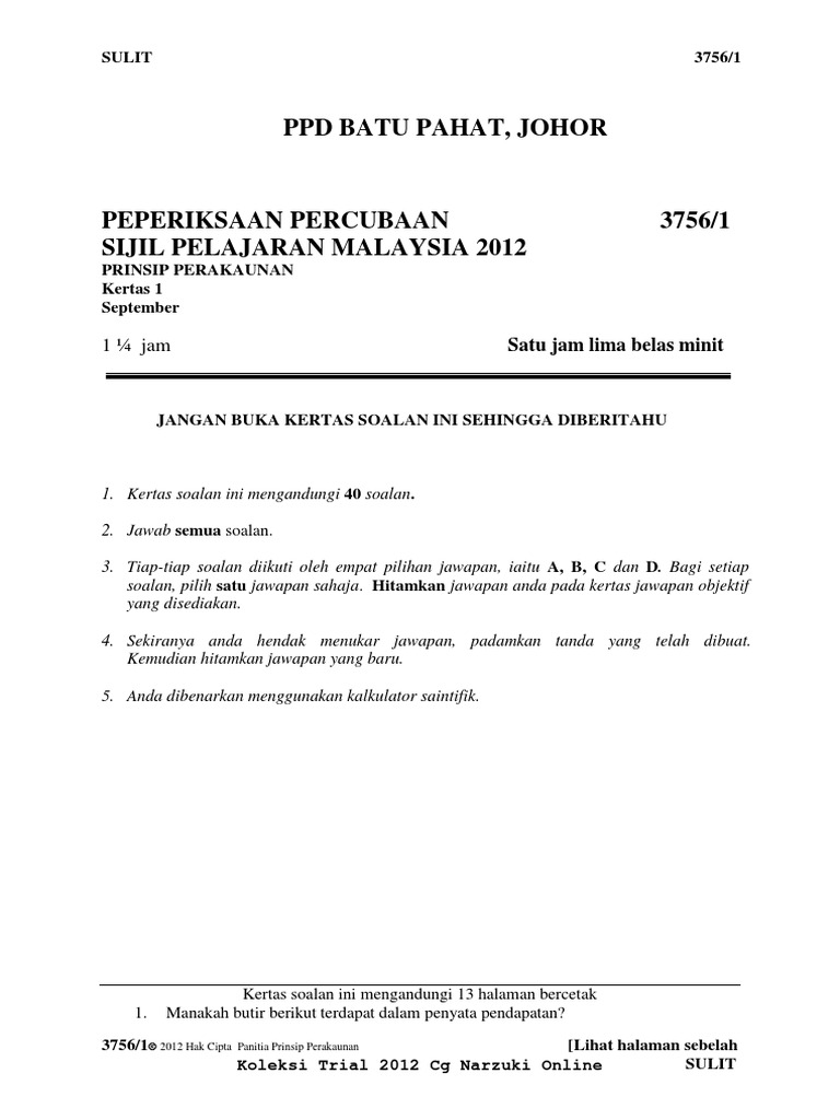 Kertas 4 Calon Persendirian. Cg Narzuki April 3 2015 at 925 pm Syak waalaikumussalam. KOLEKSI TRIAL PRINSIP PERAKAUNAN SPM 2016 Cg Narzuki Online.